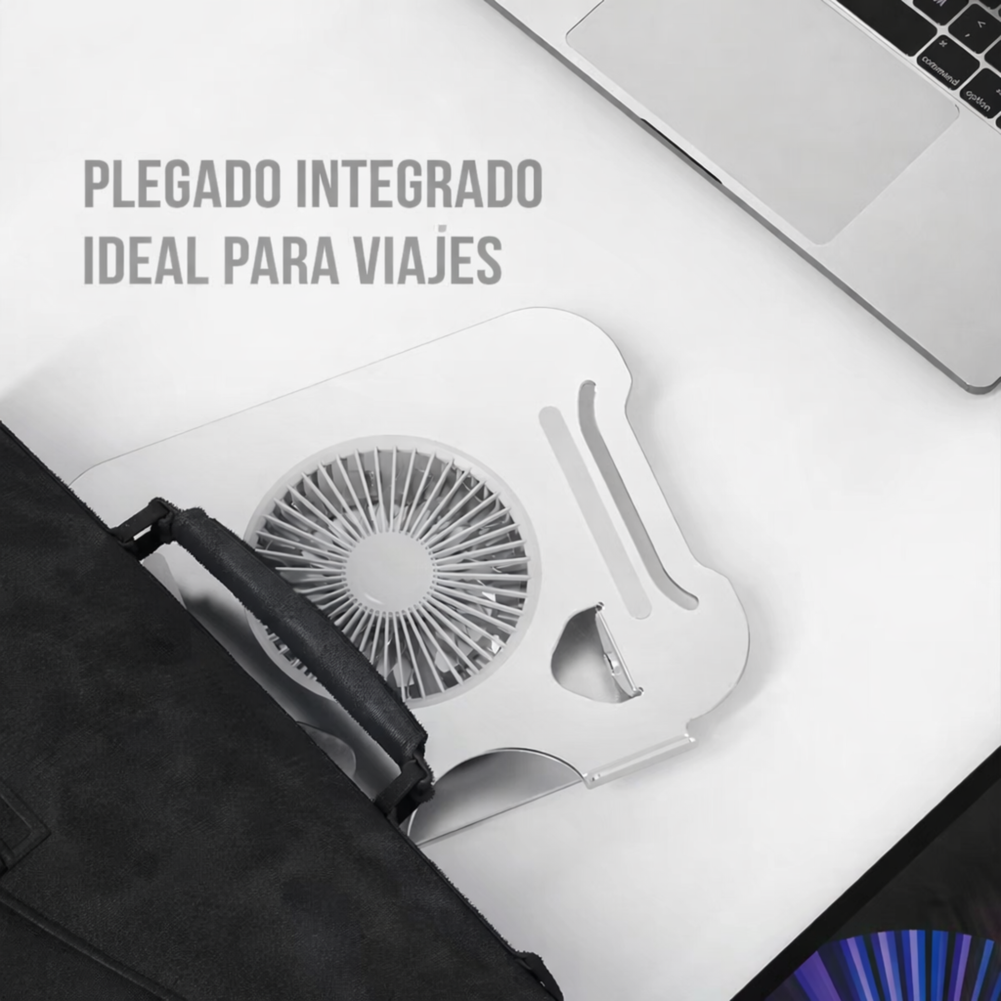 SOPORTE BANDEJA FAN COOLER DE ALUMINIO NOTEBOOK TABLETAS LUZ LED REGULABLE INCLINACION ALTURA 15"