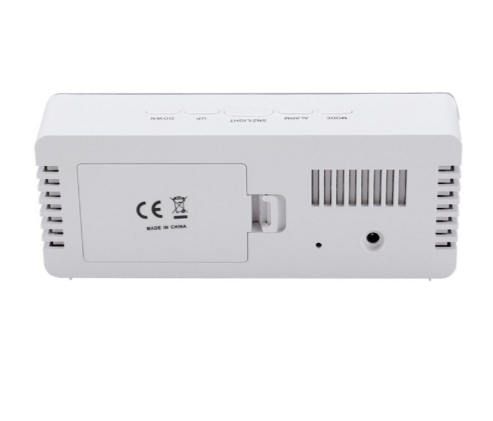 Cinco botones de función: modo, alarma, SNZ/LIGHT, arriba y abajo.
